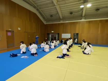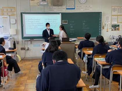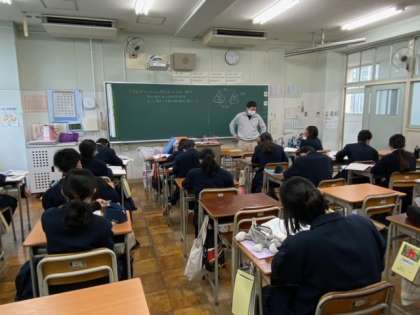 英語は発表しているところです。素晴らしい。数学は正多面体、体育女子は柔道です。