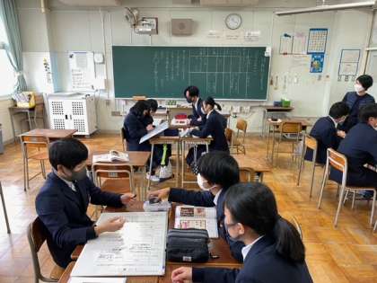 数学は円の接線、美術はクイズ形式の学習、国語は情報社会を生きるを学習しています。
