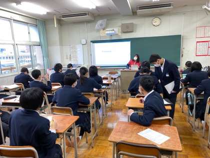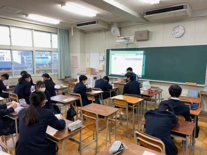 教室に入った瞬間から元気です。テストがいっぱいありますが、頑張ってくれると願っています。