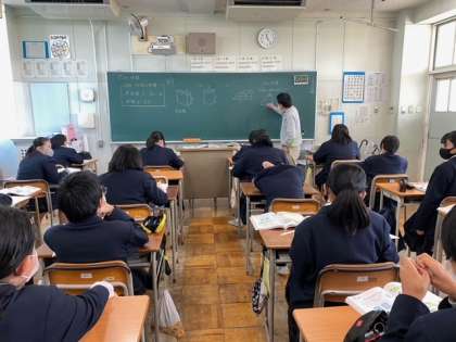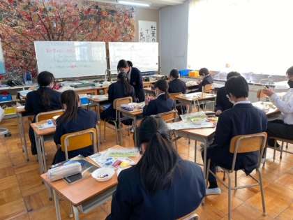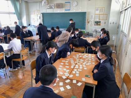 美術は粘土で作品づくり、国語は百人一首の練習、数学は図形の面積の学習です。