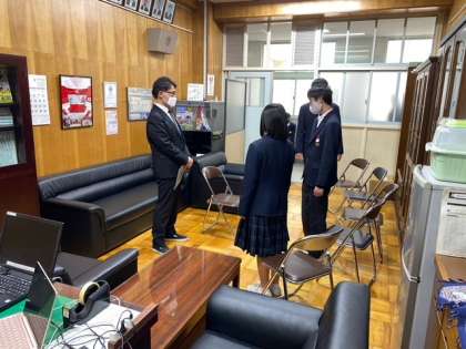 2回目の面接練習3年1組です。同じ質問でリベンジができます。自信を持ってインパクト強くハキハキ答えていました。ナイスです。