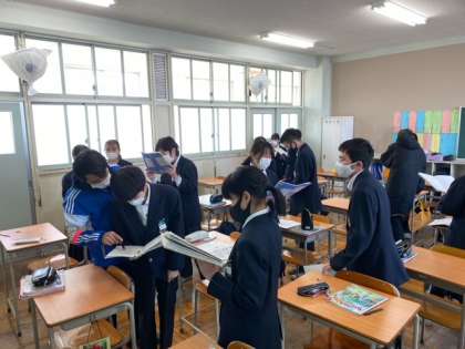 過去形の単語を使ったペアワークです。全員が授業内容をよく理解して、英語で話すことの楽しさに触れていました。真住中学校の素敵な生徒たちです。