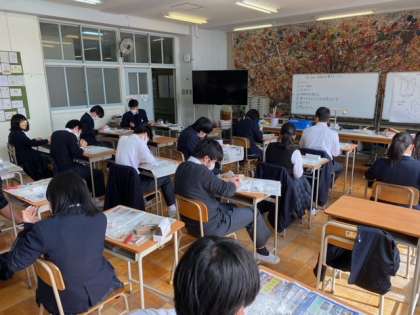美術は判子づくり、数学は入試対策、社会も入試対策です。