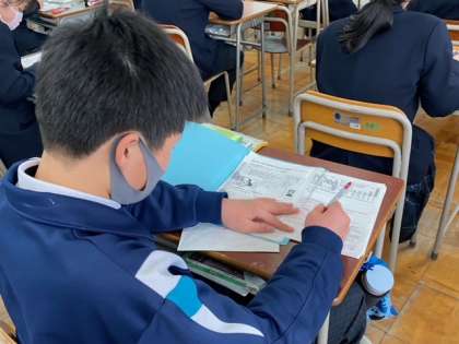 2年生の社会に取り組む様子もまたポジティブです。素晴らしい生徒たちです。