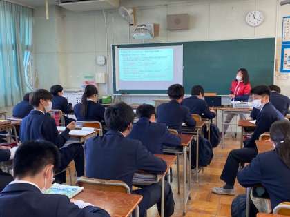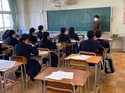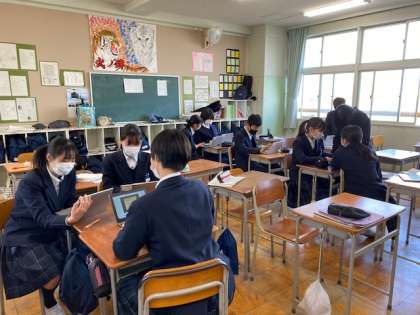 英語、理科、音楽の学年末テストの振り返りの様子です。