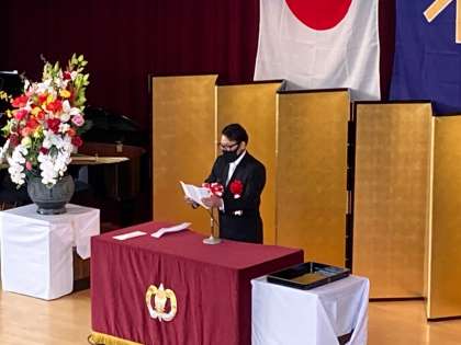 校長式辞、PTA会長祝辞の様子です。会長が涙ながらに想いを語ってくれました。1年間お世話になりました。
