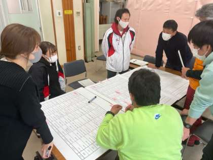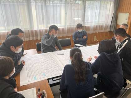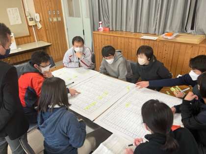 各学年に別れて付箋を貼りながら、議論を進めています。