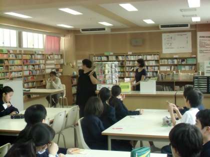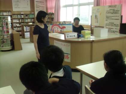 5月15日(金)午後の総合的な学習の時間を利用し、学校元気アップ地域コーディネーターとボランティアが、1年生対象に図書館利用の説明会と読み聞かせを行いました。