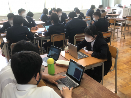 3年生は、修学旅行の取組として、訪問先についてネットで調べる学習をしました。
