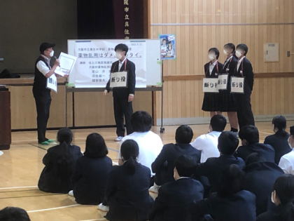 本日、3年生対象に薬物乱用防止教室を行いました。
