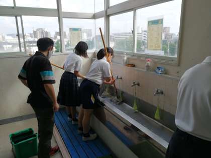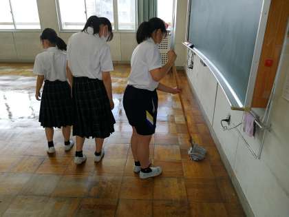 放課後に、保健美会員を中心に、教室のワックスがけを行いました。