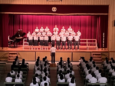 本日、3年生による合唱コンクールが行われました。優勝は2組、準優勝は1組でしたが、どこのクラスが優勝するかわからないほどの接戦でした。