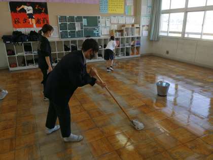 1・2年生は、放課後にワックスがけをしました。教室の床がピカピカになりました!!