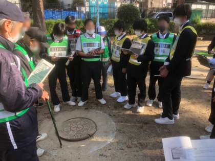 2年ぼうさいまち歩き 防火水そう