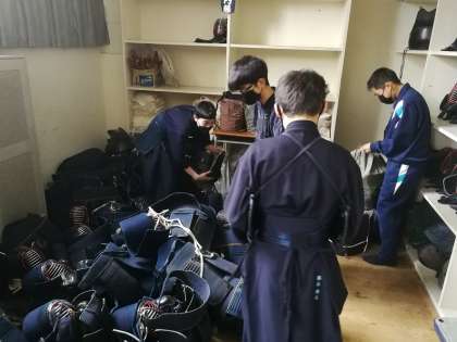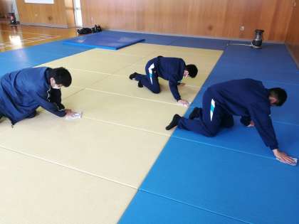 柔道部と剣道部で、道場への感謝の意を込めて、格技室の大掃除をしています。