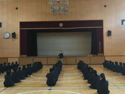 毎週水曜日の朝は、1年生の学年集会です。今日は、人と関わることの大切さについてのお話でした。いろいろな人と出会い、いろいろな人の考え方を知って、自分の考えを広げてほしいです。