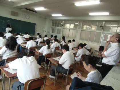昨日9月1日(火)、3限目2−4で理科横矢教諭が、4限目2−2で家庭科雨森教諭が研究授業を行いました。大阪市教育センターより、担当の先生が来校され、授業の指導をしていただきました。今後も指導力を高めるため努力していきます。その一環ですが、明日9月3日(木)は、住之江区・住吉区・西成区の中学校で研究発表会が行われ、それを勉強するため多くの先生方が参加するため、授業は午前中のみの45分授業になります。お知りおきください。