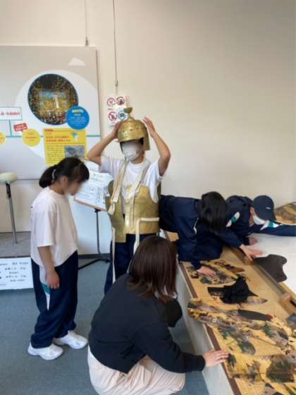 体験コーナー。パズルを作ったり、甲冑を着たり。