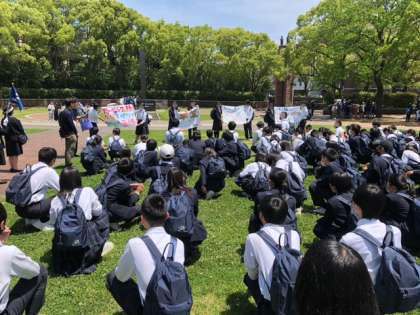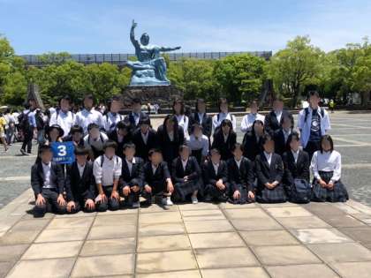 修学旅行 爆心地セレモニーと平和祈念像前での撮影