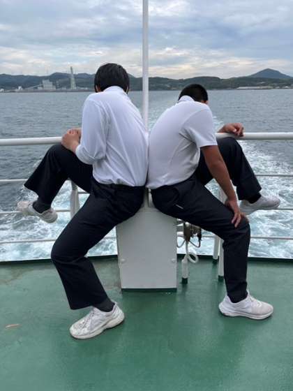 修学旅行 民泊に向けて、青島への船2