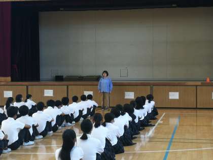 毎週木曜日の朝に、2年生の学年集会をしています。