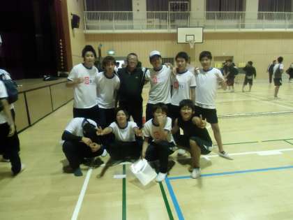 左が優勝チーム「ピラニアンズ」右は第3位の「かっちゃん」です。なお、第2位にはPTAチームが入賞しました。大人の意地を見せていただき、ありがとうございました。