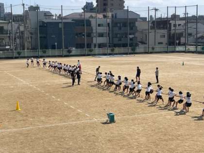 綱引きの予選が行われました。第1試合の3組対4組は2対1で3組の勝ち、第2試合の1組対2組は2対0で1組の勝ち。体育大会当日は、決勝が1組対3組、3位決定戦が2組対4組となります。なお、優勝したクラスとPTAとの対戦を予定しております。