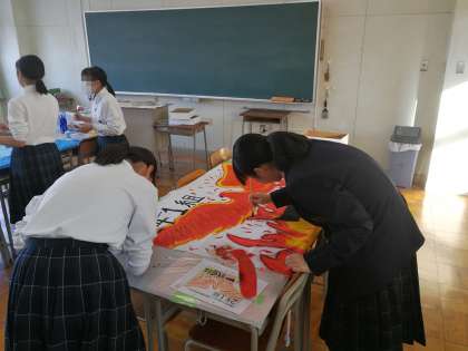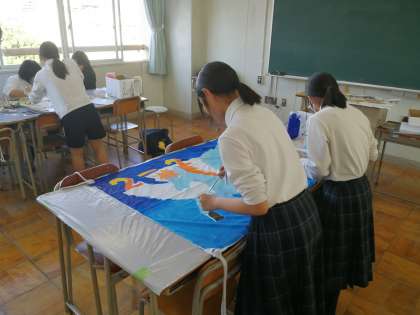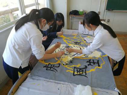 2年生の学級旗作成のようすです。完成まで、あと少しです。出来上がりが楽しみです。