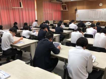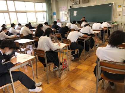 上、スピーキングテスト(ヘッドホンをして、タブレットに向かってスピーキングをします。)