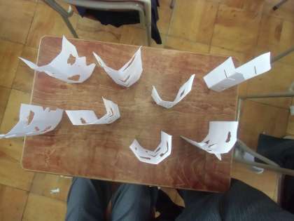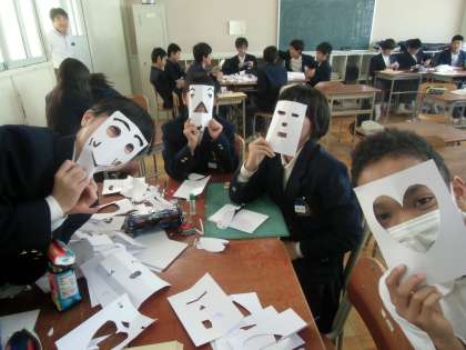 写真は、2年生の展示作品制作の様子です。