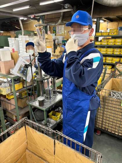 普段、触れないような工具に触らせていただきました。エプロンと帽子も似合っています。