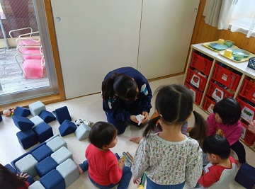 地域の保育園7か所にお世話になっています。園児と楽しく過ごしたり、お昼寝をさせていたりと、頑張っていました。