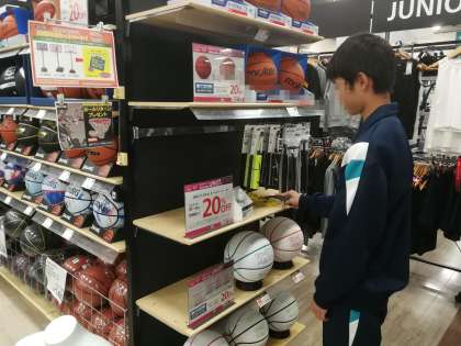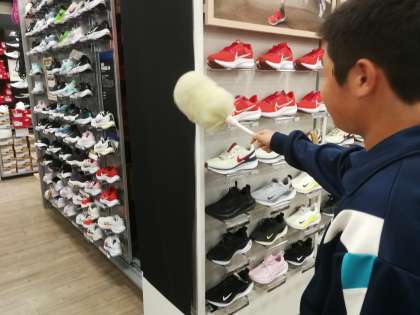 SPORTS DEPOにも職場体験学習でお世話になっています。商品棚の掃除をしています。