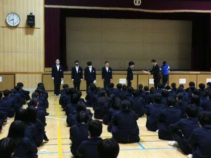 毎週月曜日の朝に、全校集会を行っています。
