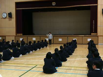 毎週木曜日の朝に、2年生の学年集会を行っています。今日の先生からのお話は、1/31(水)に行われる百人一首大会についてのものでした。文化委員や国語係が、百人一首大会に向けての準備を始めます。感謝の気持ちをもって、百人一首大会を成功させてほしいです。