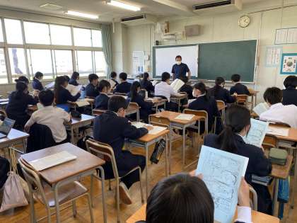 来週に行われる校外学習のしおりが配られました。 表紙と裏表紙は生徒の制作です。