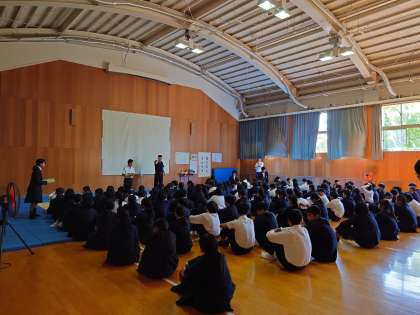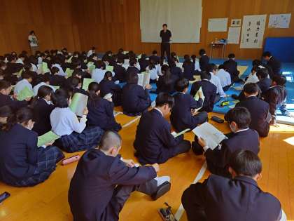 今日は1年生が《一泊移住(和歌山県立白崎青少年の家)》の取組みとして、「しおりの読み合わせ」を行いました。