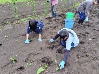 農業体験の様子です。頑張っています。