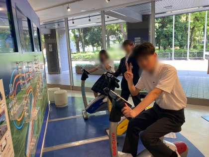 大阪科学技術館で体を動かしています。