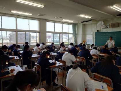 1限:国語、2限:理科、3限:英語(1年)音楽(2・3年)に取り組んでいます。教科によってはさっそく明日の授業でテストが返却されます。さて、結果はどうでしょう!?