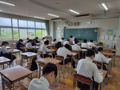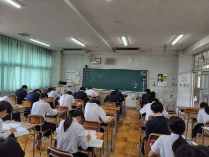 今日から期末テストです。1年:音楽・国語、2年:保健体育・国語、3年:技術家庭・国語のテストです。みんな頑張っています。