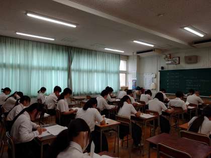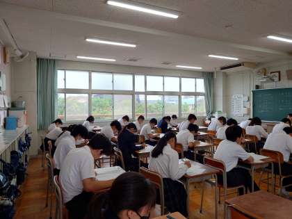 今日は予定どおり、1限めから《3年生が「チャレンジテスト」》に取り組んでいます。