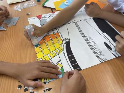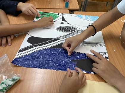 文化発表会の1年生の展示作品《ちぎり絵》の制作が始まっています。みんなで丁寧に作品を仕上げていきます。完成が楽しみです。