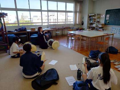 放課後に『国際クラブ』がありました。韓国・朝鮮にルーツをもつ生徒たちが参加してくれました。来月に開催される《南大阪子ども民族音楽会》に向けて「チャンゴ」の練習を始めました。上手に音を響かせています。