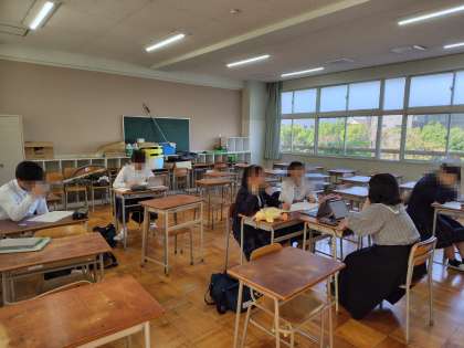 懇談期間中の、5・6限目の時間に、希望者が残って勉強をしています。写真は、英語の勉強をしているところです。まずは、来週の実力テストに向けて頑張ってほしいです。