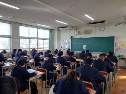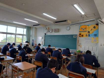 日頃の学習の成果は発揮できましたか?帰宅後は明日のテストに備えて家庭学習に励んでください。体調管理も万全に。