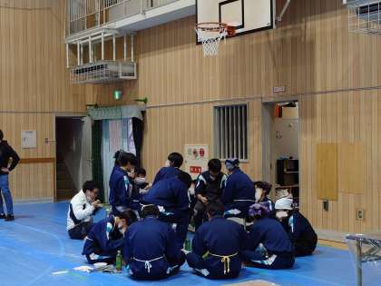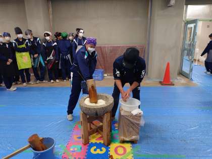 朝から冷え込みが厳しく、北風も吹いていましたが、3年生の生徒たちが参加して、自分たちでついた餅とPTA役員の皆さんに作っていただいた豚汁を美味しくいただきました。今後の進路選択に向けて頑張ってください。