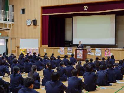 大阪府薬物乱用防止指導員をされている住之江地区保護司会の保護司の先生方をゲストティーチャーにお迎えし、《薬物乱用防止教室》を行いました。