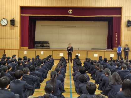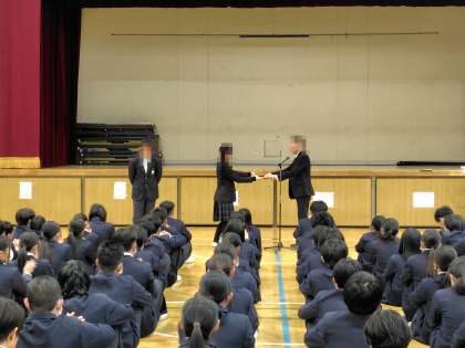 賞状の伝達に続き、校長先生と生徒主事の先生からお話がありました。