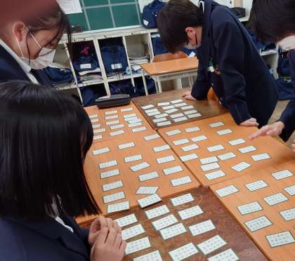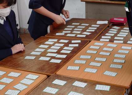 国語の授業や総合の時間に各クラス練習をしています。さて、1番たくさんの札を取るのは誰でしょう…?